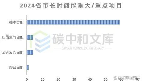 而在長時(shí)儲能中,抽水蓄能項(xiàng)目最多,59項(xiàng),總占長時(shí)儲項(xiàng)目的86.8%,其次是全釩液流儲能和壓縮空氣儲能各4項(xiàng),其中全釩液流儲能項(xiàng)目均來自四川省,而熔鹽儲能項(xiàng)目最少,僅有1項(xiàng),來自山東省。