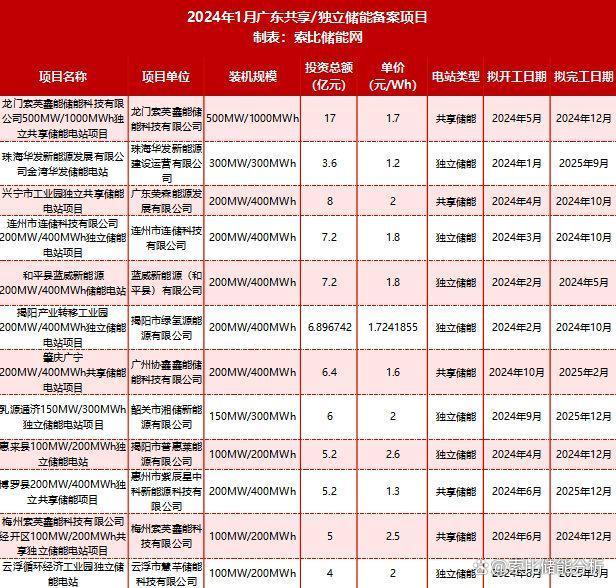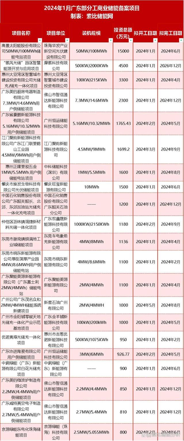 1月廣東儲能投資備案規(guī)模超120億元,工商儲項(xiàng)目116個