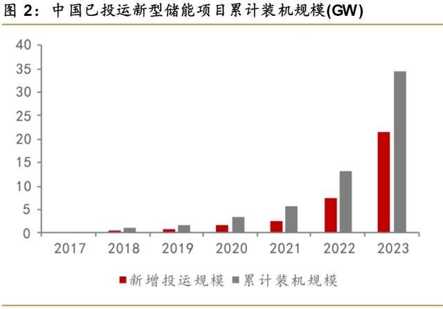 2023年中國新增投運新型儲能項目裝機規(guī)模21.5GW/46.6GWh,是2022年新增投運規(guī)模的3倍,預(yù)計2024年國內(nèi)全年新增裝機將超過35GW,保持高速增長。