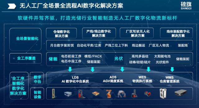 在此靠山下,磅旗科技踴躍摸索創(chuàng)新,使用構(gòu)建無人工場AI數(shù)字化,打造了自立可控的“軟件+硬件+數(shù)據(jù)+算法”云管端邊一體化處理方案,推出多品類AGV/機(jī)械人夾雜調(diào)理系統(tǒng)ADS、企業(yè)級無人工場數(shù)字中臺(tái)系統(tǒng)LDS,可能助力各AGV實(shí)現(xiàn)數(shù)據(jù)互通、協(xié)同功課,買通各工序過程的系統(tǒng)卡點(diǎn)和設(shè)施盲點(diǎn),賦能儲(chǔ)能產(chǎn)業(yè)智能制作數(shù)字化周全晉級。