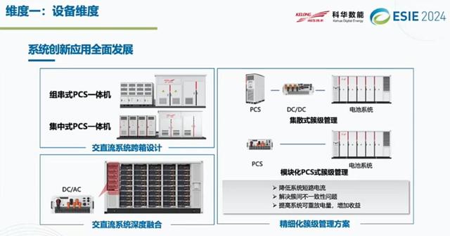 除了設(shè)備本身,我們在系統(tǒng)應(yīng)用當(dāng)中也有各種組合,交直流融合包括交直流跨箱跟深度的一處一管理,來解決電池的一致性問題。