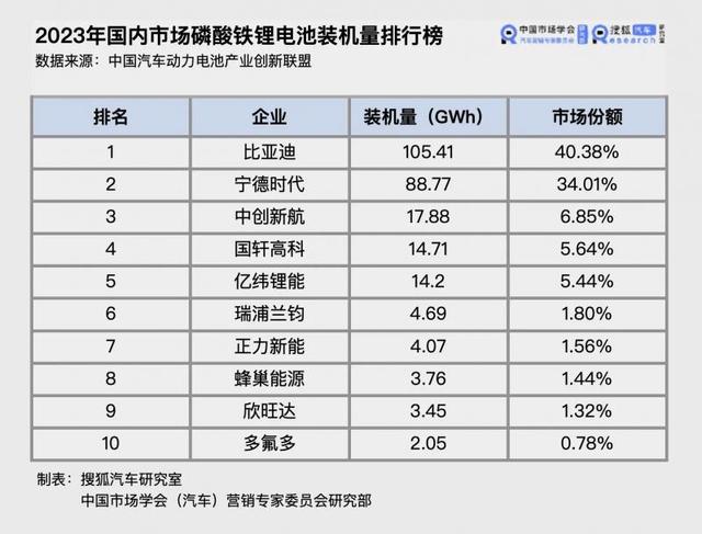 在動(dòng)力電池領(lǐng)域、特別是磷酸鐵鋰電池領(lǐng)域,寧德時(shí)代面對(duì)著來自比亞迪強(qiáng)有力的挑戰(zhàn)。中國汽車動(dòng)力電池產(chǎn)業(yè)創(chuàng)新聯(lián)盟公布的數(shù)據(jù)顯示,2023年比亞迪磷酸鐵鋰動(dòng)力電池的裝機(jī)量已經(jīng)超過寧德時(shí)代,拿下40%以上的市場(chǎng)份額。