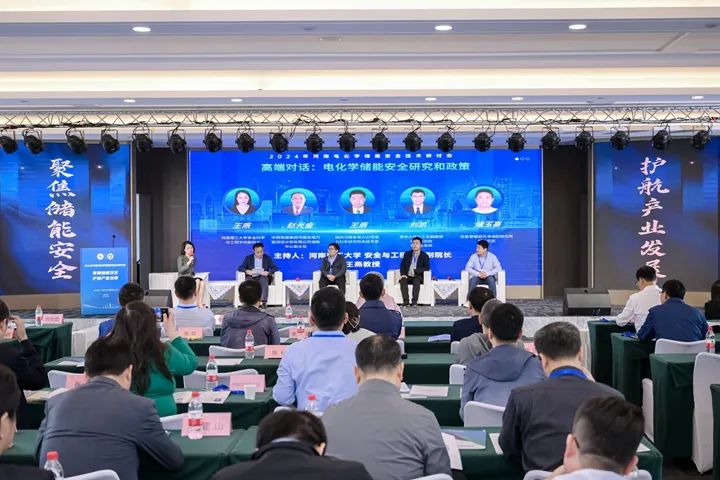 會議學(xué)術(shù)交流階段,中國科學(xué)技術(shù)大學(xué)研究員王青松、北京交通大學(xué)教授張彩萍、應(yīng)急管理部天津消防研究所副研究員儲玉喜、國網(wǎng)河南綜合服務(wù)有限公司副總經(jīng)理劉浩等14名專家學(xué)者、企業(yè)代表分別圍繞鋰離子電池?zé)崾Э貍鞑ゼ盎鹇訖C制、電池系統(tǒng)能效提升與管控關(guān)鍵技術(shù)、阻燃電解液分子設(shè)計、儲能電站早期預(yù)警與消防聯(lián)動關(guān)鍵技術(shù)、電化學(xué)儲能標準規(guī)范、產(chǎn)業(yè)發(fā)展政策現(xiàn)狀與需求等內(nèi)容作了交流報告。本次會議另設(shè)“高端對話”環(huán)節(jié),與會專家學(xué)者、企業(yè)代表深入討論電化學(xué)儲能安全技術(shù)、政策以及應(yīng)用中的核心難題,提出切實可行的解決方案及科學(xué)建議,為河南省電化學(xué)儲能行業(yè)的安全管理、健康發(fā)展指明了方向。