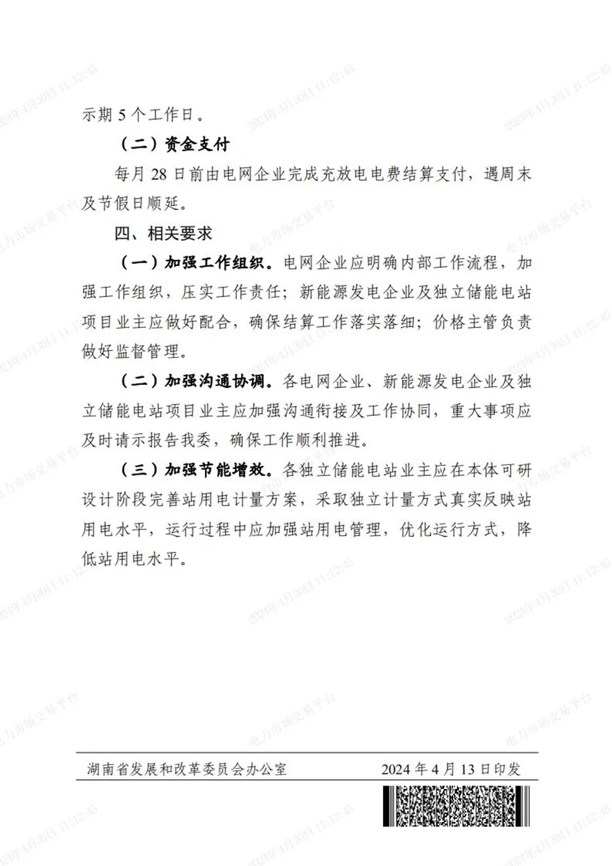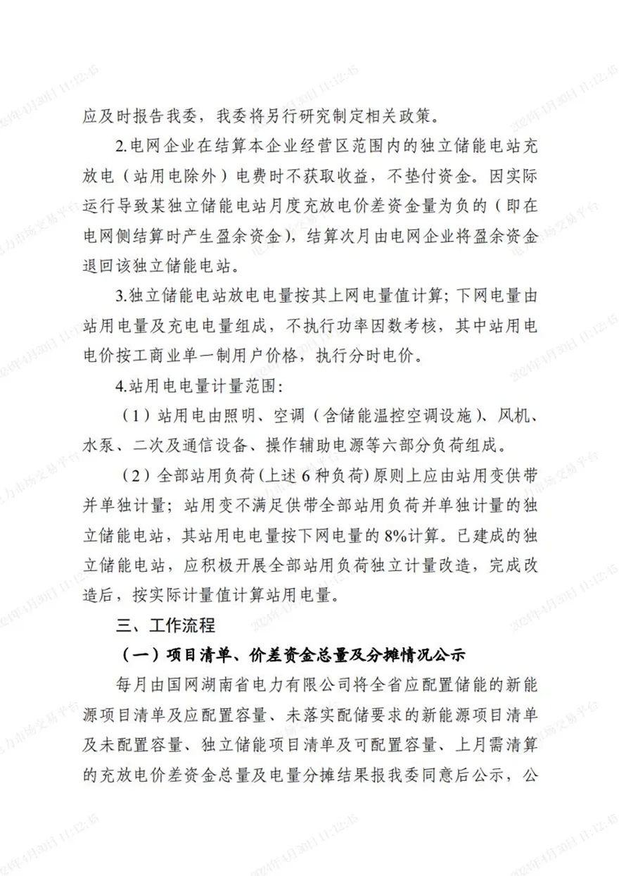另外,方案還指出:每月由國網(wǎng)湖南省電力有限公司將全省應(yīng)配置儲能的新能源項目清單及應(yīng)配置容量、未落實配儲要求的新能源項目清單及未配置容量、獨立儲能項目清單及可配置容量、上月需清算的充放電價差資金總量及電量分?jǐn)偨Y(jié)果報我發(fā)改委同意后公示,公示期5個工作日。