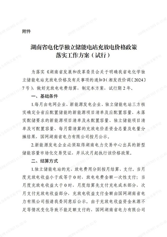 近日,湖南發(fā)改委發(fā)布《湖南省發(fā)展和改革委員會關(guān)于落實我省電化學(xué)獨立儲能電站充放電價格政策有關(guān)工作的通知》,并隨通知下發(fā)了《湖南省電化學(xué)獨立儲能電站充放電價格政策落實工作方案》。