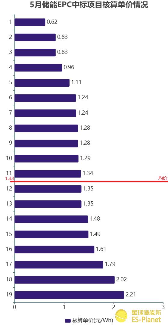※ 5月儲(chǔ)能EPC中標(biāo)單價(jià)情況 來(lái)源:星球儲(chǔ)能所