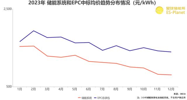 ※ 圖表:2023年儲能系統(tǒng)及EPC中標均價