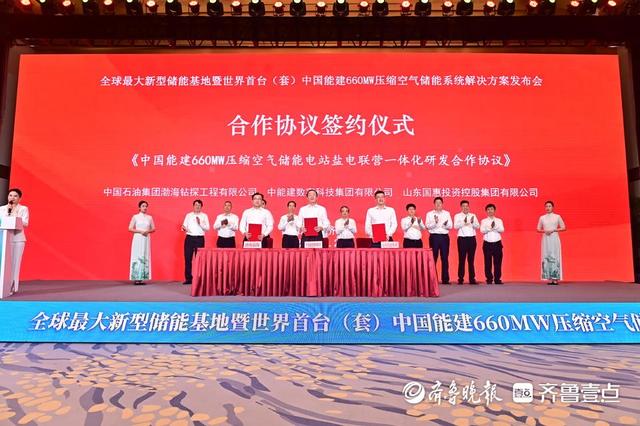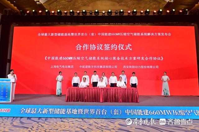 6月26日,由中國能建主辦、山東國惠協(xié)辦的全球最大新型儲能基地暨《世界首臺(套)中國能建660MW壓縮空氣儲能系統(tǒng)解決方案》發(fā)布會,在山東濟南隆重舉行。世界最大規(guī)模新型儲能基地啟動、最大容量壓氣儲能系統(tǒng)解決方案發(fā)布,標志著我國在壓縮空氣儲能領(lǐng)域再攀新高峰,將加速推動儲能行業(yè)規(guī)?;a(chǎn)業(yè)化發(fā)展,成為新型電力系統(tǒng)中高比例綠電消納、保證系統(tǒng)安全的重要支撐。