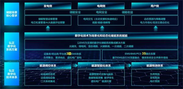 弘正儲(chǔ)能自成立以來(lái),就把數(shù)字化作為儲(chǔ)能解決方案的切入點(diǎn),形成了能源調(diào)控、能源智能化和能源預(yù)測(cè)三大數(shù)字化儲(chǔ)能體系,結(jié)合自主研發(fā)的EMS能量管理系統(tǒng)強(qiáng)大的數(shù)據(jù)采集、轉(zhuǎn)發(fā)及邊緣計(jì)算能力,能夠充分滿足虛擬電廠對(duì)站點(diǎn)的數(shù)據(jù)采集、策略控制的各類要求,保障儲(chǔ)能設(shè)備能夠順暢地接入虛擬電廠平臺(tái)。