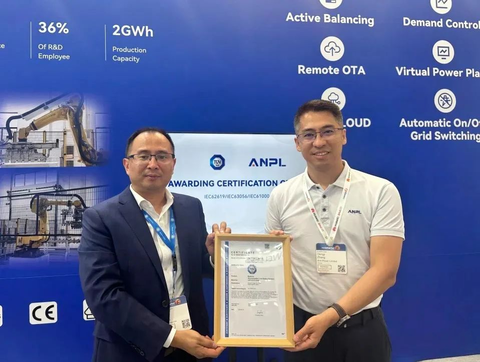 認(rèn)證展會(huì)現(xiàn)場(chǎng),安瑞哲這款儲(chǔ)能柜獲頒歐洲市場(chǎng)權(quán)威的TüV南德認(rèn)證證書。南德TüV是世界上規(guī)模最大、最悠久認(rèn)證機(jī)構(gòu)之一,得到全球的廣泛認(rèn)可。南德TüV對(duì)其新品的認(rèn)同,不僅因?yàn)槠浞闲袠I(yè)標(biāo)準(zhǔn),還源于產(chǎn)品的創(chuàng)新設(shè)計(jì)。安瑞哲總經(jīng)理張登基介紹,HULK 200具備單體容量可調(diào)控的特點(diǎn),其單體容量范圍為100~200KWh,多機(jī)并聯(lián)可擴(kuò)展至MWh級(jí)容量,靈活配置可滿足不同客戶需求。依托安瑞哲自主研發(fā)的風(fēng)冷系統(tǒng),電池模組和系統(tǒng)的防水等級(jí)均有了大幅提升,有力保障了運(yùn)行安全。創(chuàng)新的散熱板和風(fēng)道設(shè)計(jì)確保設(shè)備在各種環(huán)境下都能穩(wěn)定運(yùn)行,產(chǎn)品既媲美液冷的散熱性能,又保留風(fēng)冷的高效運(yùn)維。