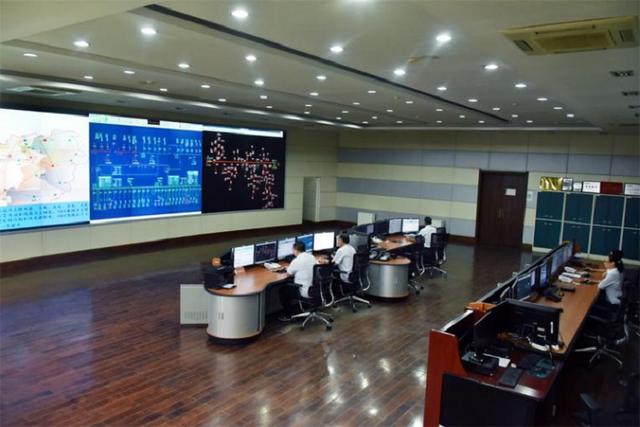 國(guó)網(wǎng)山東威海供電公司員工在調(diào)控中心觀察電網(wǎng)負(fù)荷情況,保障可靠供電。