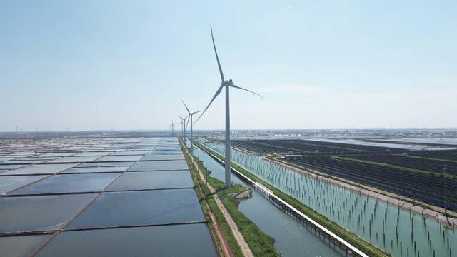 該項(xiàng)目作為魯北基地首家投產(chǎn)運(yùn)營(yíng)的風(fēng)光儲(chǔ)試點(diǎn),創(chuàng)新性地采用“漁光互補(bǔ)”“鹽光互補(bǔ)”發(fā)展模式,實(shí)現(xiàn)了鹽光、漁光與儲(chǔ)能的集中連片、立體高效利用,標(biāo)志著綠色發(fā)展的新實(shí)踐。而幾年前,這片區(qū)域還是一片荒蕪的鹽堿地,營(yíng)里鎮(zhèn)經(jīng)濟(jì)發(fā)展辦副主任王恒回憶,這里曾以鹽田和養(yǎng)殖灘涂為主,產(chǎn)業(yè)單一、發(fā)展模式傳統(tǒng),海洋資源利用率低,限制了區(qū)域的綜合發(fā)展。
