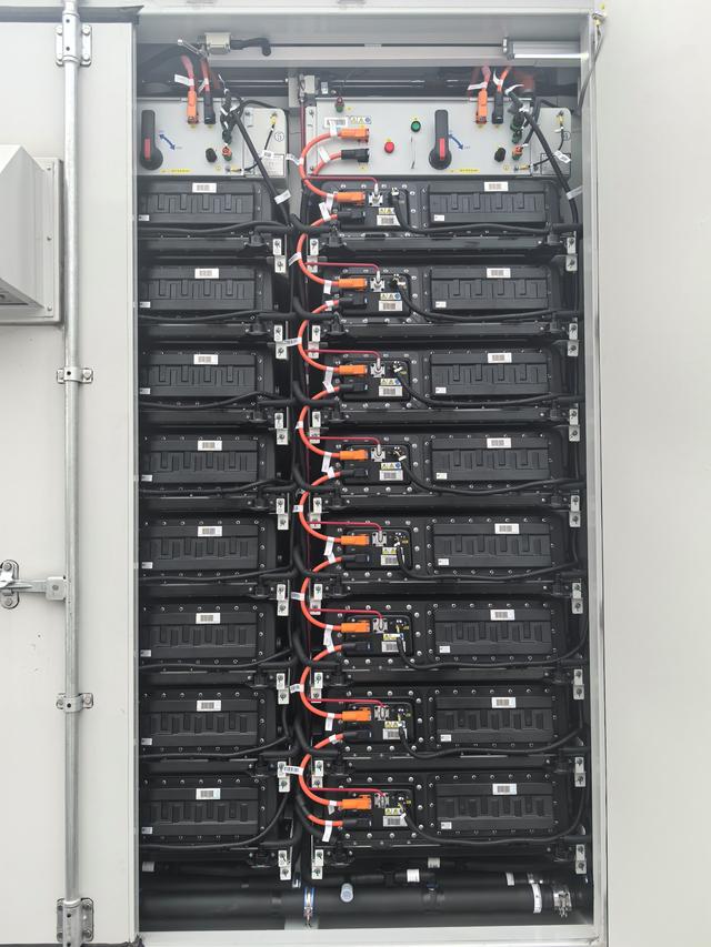 在潞城仁和儲(chǔ)能電站園區(qū)內(nèi)有20個(gè)電化學(xué)儲(chǔ)能單位,好似一個(gè)個(gè)由電池組成的“車(chē)廂”。打開(kāi)“電池車(chē)廂”艙門(mén),記者發(fā)現(xiàn),這個(gè)龐然大物是由多個(gè)小塊的磷酸鐵鋰電瓶組成的。每個(gè)儲(chǔ)能單位由2個(gè)小倉(cāng)組成,每個(gè)倉(cāng)內(nèi)有24簇電池包,每簇電池包內(nèi)有8塊電池,這些電池的壽命約在8-10年。