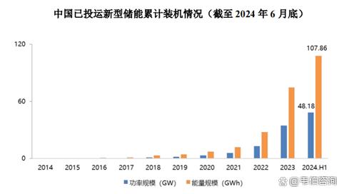 抽水蓄能累計(jì)裝機(jī)占比繼去年首次低于60%之后,再次下降近10個(gè)百分點(diǎn),首次低于55%。其中新型儲(chǔ)能累計(jì)裝機(jī)達(dá)到48.18GW/107.86GWh,功率規(guī)模同比增長(zhǎng)129%,能量規(guī)模同比增長(zhǎng)142%。