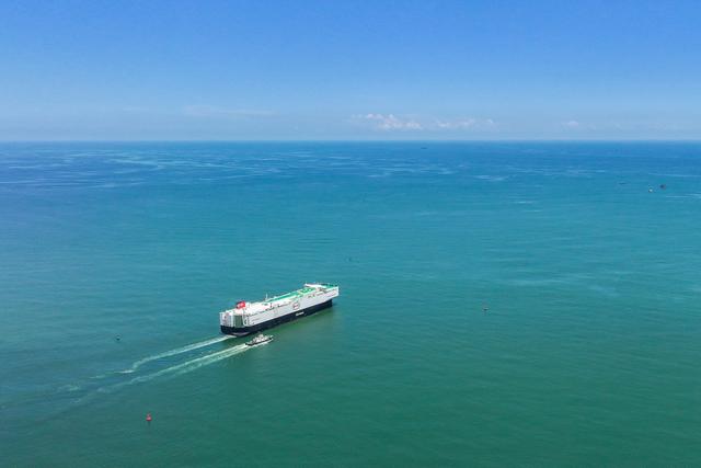 比亞迪自主滾裝船“開拓者1號(hào)”滿載出海。朱洪波 陶清清/攝