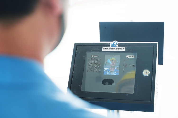 廣州供電局施工人員在“智慧工地”入口通過(guò)人臉識(shí)別入場(chǎng)。劉海寧 攝