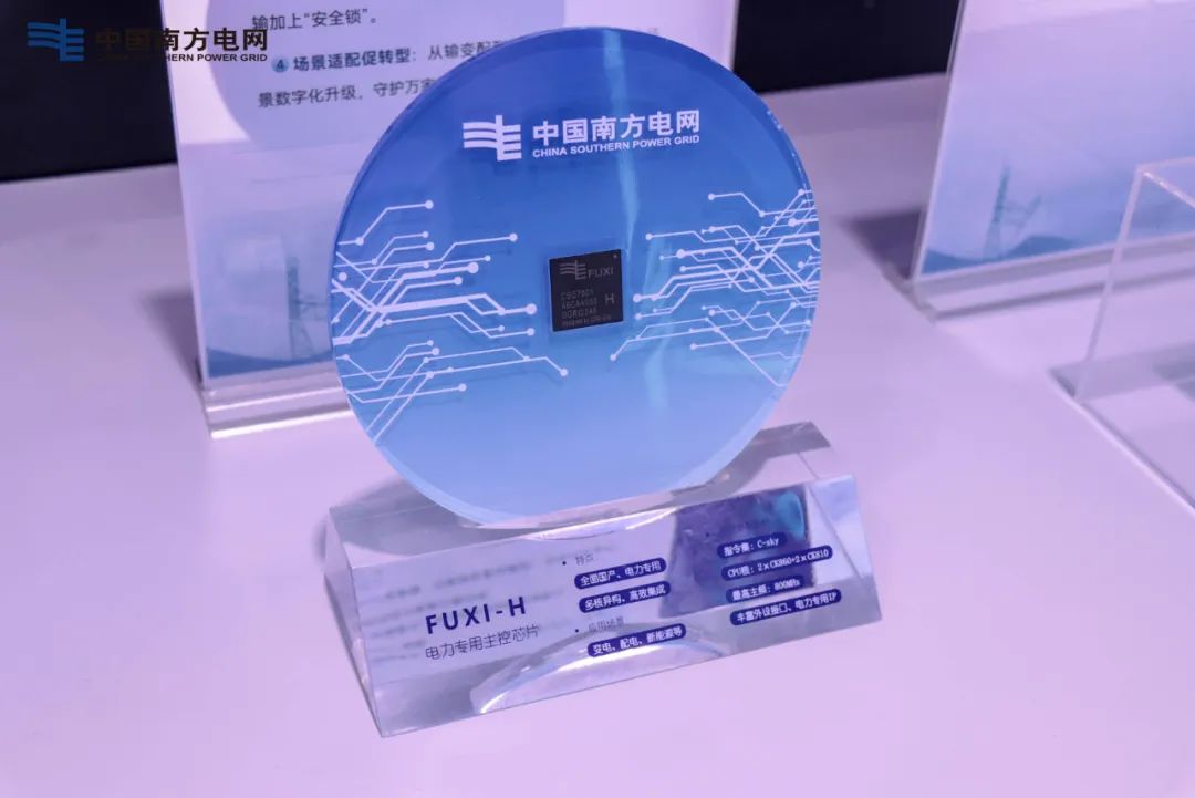 ▲量產(chǎn)電力主控芯片“伏羲”亮相2025世界人工智能大會。(南網(wǎng)傳媒公司供圖)