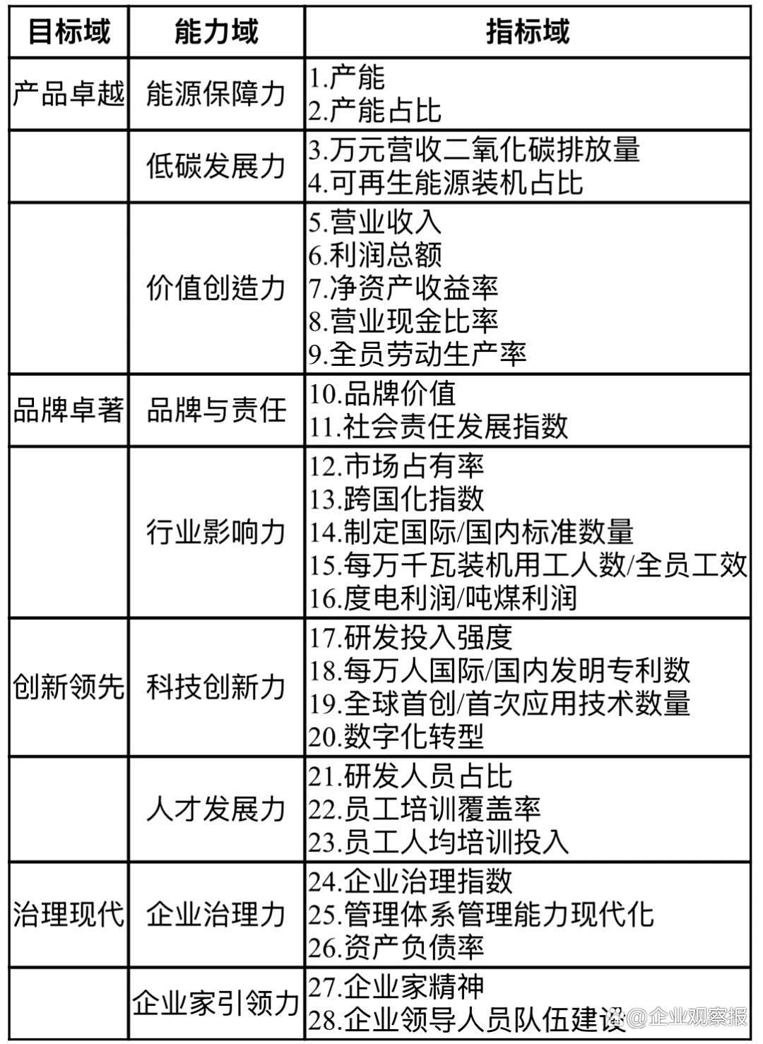 “一個體系”,即構(gòu)建業(yè)績維度和管理要素并重的,滿足全集團統(tǒng)一、多級貫通的世界一流企業(yè)對標指標體系。對標指標體系重點體現(xiàn)“產(chǎn)品卓越、品牌卓著、創(chuàng)新領(lǐng)先、治理現(xiàn)代”十六字標準和“創(chuàng)新力、競爭力、治理力、影響力、引領(lǐng)力”五力要求,結(jié)合集團未來發(fā)展方向、定位和目標等進行選擇和設(shè)置,通過分級分類建立集團各級子公司的對標指標體系,形成涵蓋集團公司綜合對比指標體系及子分公司等若干產(chǎn)業(yè)特色共性指標,實現(xiàn)傳導(dǎo)壓力、激發(fā)動力,進而增強創(chuàng)建世界一流企業(yè)行動的系統(tǒng)性、針對性和有效性。