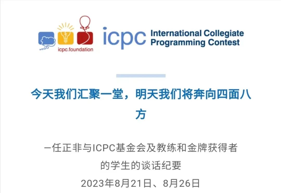 9月19日,國際大學生程序設計競賽(International Collegiate Programming Contest,簡稱ICPC)官網(wǎng)披露了華為創(chuàng)始人兼CEO任正非8月21日、8月26日與ICPC基金會及教練和金牌獲得者的學生的談話紀要。