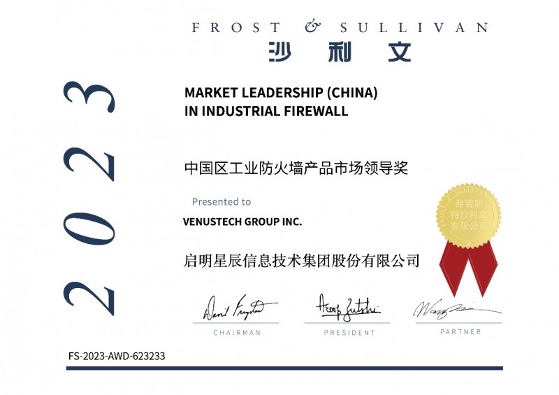 本網(wǎng)訊 近日,弗若斯特沙利文(Frost & Sullivan,以下簡(jiǎn)稱“沙利文”)正式發(fā)布2023年中國(guó)工業(yè)防火墻市場(chǎng)排名,啟明星辰集團(tuán)工業(yè)防火墻以36.7%的市場(chǎng)份額雄踞榜首,并再次榮獲“2023年度中國(guó)區(qū)工業(yè)防火墻產(chǎn)品市場(chǎng)領(lǐng)導(dǎo)獎(jiǎng)”。至此,啟明星辰集團(tuán)已連續(xù)六年領(lǐng)跑中國(guó)工業(yè)防火墻市場(chǎng)。