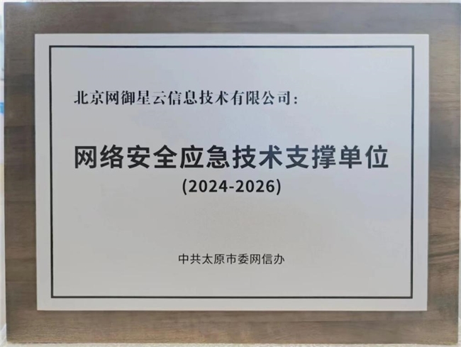 多年來,網(wǎng)御星云積極投身山西省網(wǎng)絡(luò)安全建設(shè),為地區(qū)網(wǎng)絡(luò)安全產(chǎn)業(yè)發(fā)展不斷貢獻(xiàn)智慧與力量。在啟動儀式上,網(wǎng)御星云憑借優(yōu)秀的網(wǎng)絡(luò)安全技術(shù)能力和服務(wù),榮獲太原市委網(wǎng)信辦頒發(fā)的“網(wǎng)絡(luò)安全應(yīng)急技術(shù)支撐單位”稱號!