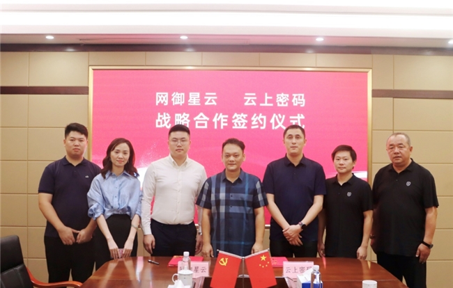 簽約儀式上,云上密碼總經(jīng)理姜林海與網(wǎng)御星云江西分公司總經(jīng)理朱祖儀簽署合作協(xié)議。雙方高層領(lǐng)導(dǎo)均對(duì)此次合作表示了高度的重視和期待。