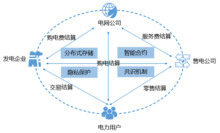 市場化的電費結(jié)算是能源交易的核心業(yè)務,我國的電費結(jié)算技術(shù)開始于1960年,隨后被廣泛應用于各行各業(yè)。目前,我國普遍采取“預購電”方式結(jié)算電費,但這種模式對分布式新能源接入等多種新場景,存在能量流、信息流不統(tǒng)一,交易流程長、響應不及時、合同履約難掌控、信用體系難建立等問題。