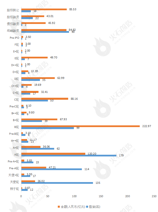圖2:2022年各輪次融資數(shù)量及金額 來(lái)源:火石創(chuàng)造產(chǎn)業(yè)數(shù)據(jù)中心