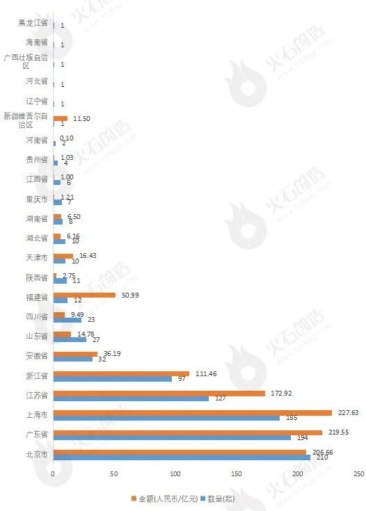 圖3:2022年各地區(qū)融資數(shù)量及金額 來(lái)源:火石創(chuàng)造產(chǎn)業(yè)數(shù)據(jù)中心