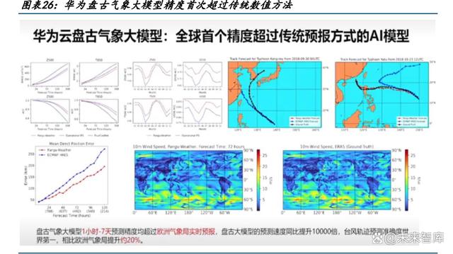 華為盤古氣象大模型精度首次超過傳統(tǒng)數(shù)值方法,速度提升 10000 倍以上。華為云發(fā)布 的盤古氣象大模型 1 小時-7 天預(yù)測精度均高于傳統(tǒng)數(shù)值方法,同時預(yù)測速度提升 10000 倍,能夠提供秒級的全球氣象預(yù)報(傳統(tǒng)數(shù)值預(yù)測方法無法做到),包括位勢、濕度、風(fēng) 速、溫度、海平面氣壓等。同時,盤古氣象大模型在一張 V100 顯卡上,只需要 1.4 秒就 能完成 24 小時的全球氣象預(yù)報。