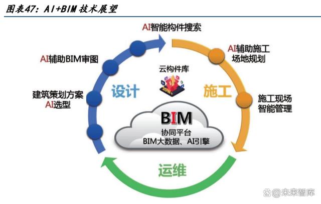BIM 與人工智能深度融合,有望在設(shè)計(jì)、施工、運(yùn)維階段開(kāi)拓應(yīng)用場(chǎng)景與解決方案。 設(shè)計(jì)階段:1)構(gòu)件智能搜索:可以在構(gòu)件智能搜索中使用人工智能對(duì)構(gòu)件進(jìn)行準(zhǔn)確 的自動(dòng)分類,以及使用自然語(yǔ)言理解技術(shù)實(shí)現(xiàn)構(gòu)件屬性的智能校準(zhǔn);2)AI 輔助布局 規(guī)劃:融入最新的機(jī)器學(xué)習(xí)技術(shù),可以在瀏覽器上生成建筑策劃文件,并輸出建筑空 間的最優(yōu)化布局;3)AI 輔助 BIM 審圖:AI 技術(shù)可以輔助 BIM 對(duì)大量規(guī)范、圖集、標(biāo) 準(zhǔn)以及模型、圖紙的匹配性學(xué)習(xí),做好設(shè)計(jì)合規(guī)性、合理性的把控。施工階段:進(jìn)行輔助施工場(chǎng)地規(guī)劃,AI 可以通過(guò)場(chǎng)地智能布置和合規(guī)合理性校驗(yàn)來(lái) 幫助經(jīng)驗(yàn)不足的技術(shù)人員增質(zhì)提效,通過(guò)建模對(duì)施工現(xiàn)場(chǎng)不同階段的復(fù)雜狀態(tài)進(jìn)行模 擬展示,通過(guò)數(shù)據(jù)分析及時(shí)反饋前期方案的合理性,同時(shí)反向指導(dǎo)施工組織設(shè)計(jì),進(jìn) 行資源配置優(yōu)化。 運(yùn)維階段:進(jìn)行運(yùn)維智能管理,AI 可以通過(guò)機(jī)器人和無(wú)人機(jī)等的應(yīng)用,使用大量實(shí) 際現(xiàn)場(chǎng)視頻數(shù)據(jù)進(jìn)行訓(xùn)練,對(duì)現(xiàn)場(chǎng)數(shù)據(jù)進(jìn)行分類處理和智能管理,大幅提升施工效率 和安全質(zhì)量水準(zhǔn)。
