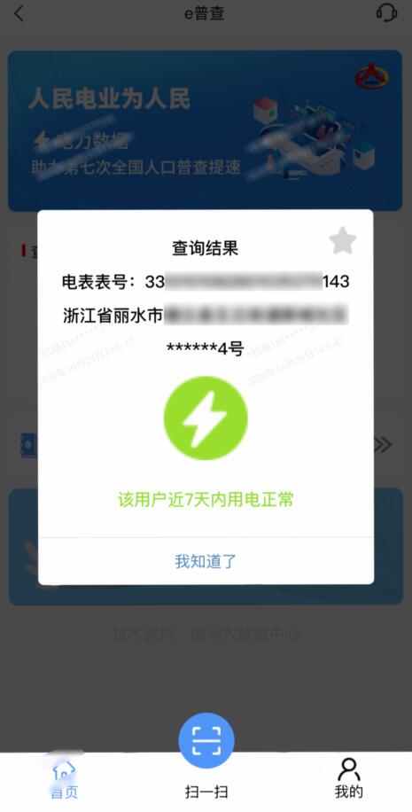 查詢操作也十分簡單:只需打開網上國網app,點擊“e普查”模塊,掃描住戶用電電能表上的條形碼(即表號),隨后將自動生成綠、黃、紅三種查詢結果,快速呈現出該住戶的用電情況。
