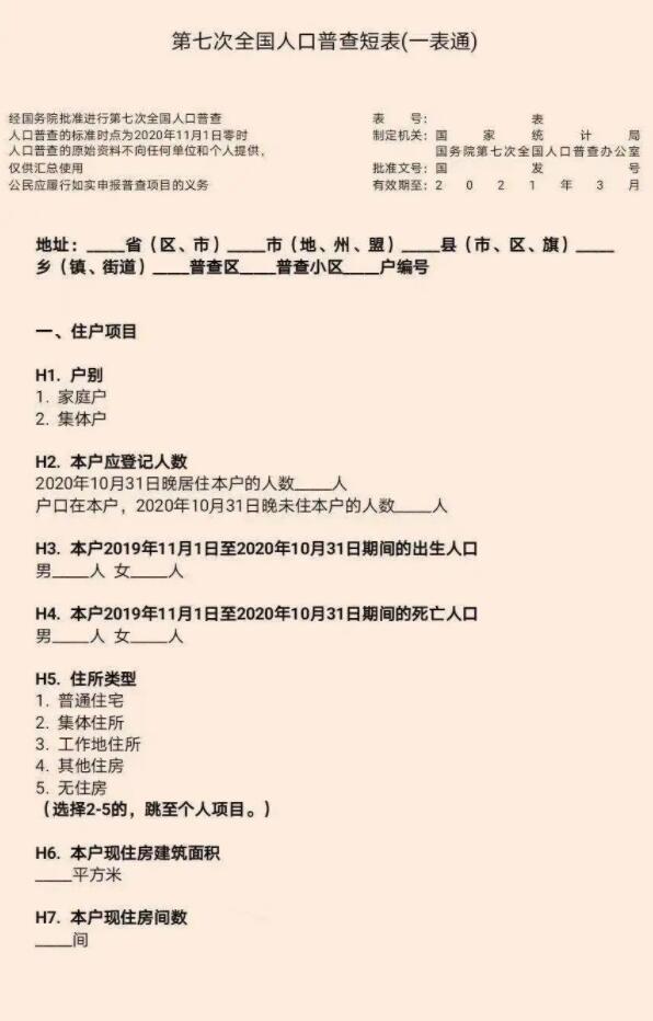 11月1日零時起,第七次全國人口普查進入正式登記階段。