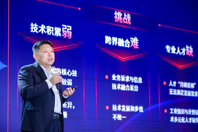 工業(yè)數(shù)字化本身是一個(gè)極其復(fù)雜的系統(tǒng)工程,涉及IT和OT兩大技術(shù)體系的深度融合。在將工業(yè)知識(shí)和要素轉(zhuǎn)變?yōu)閿?shù)據(jù)、信息、決策的過(guò)程中,會(huì)遇到技術(shù)、應(yīng)用、產(chǎn)業(yè)、人才等多維度挑戰(zhàn)。