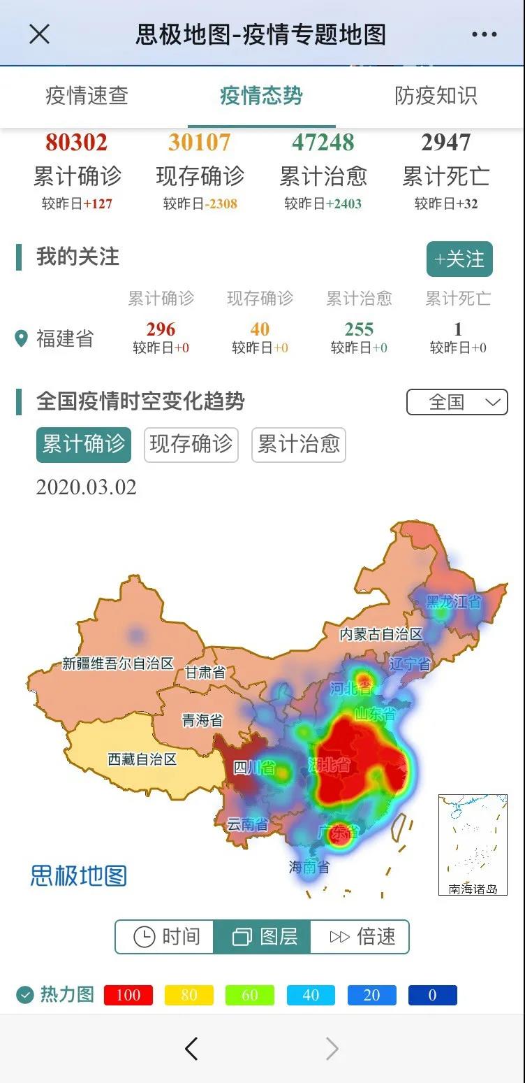 疫情專題地圖可為廣大用戶提供在線的疫情速查、展示疫情時(shí)空演進(jìn)變化、分享科學(xué)有效的防疫知識(shí),幫助用戶定位周邊的確診病例,掌握疫情的最新動(dòng)態(tài),緩解大眾焦慮,支持防疫工作有效開(kāi)展,筑起一道安全防護(hù)墻。