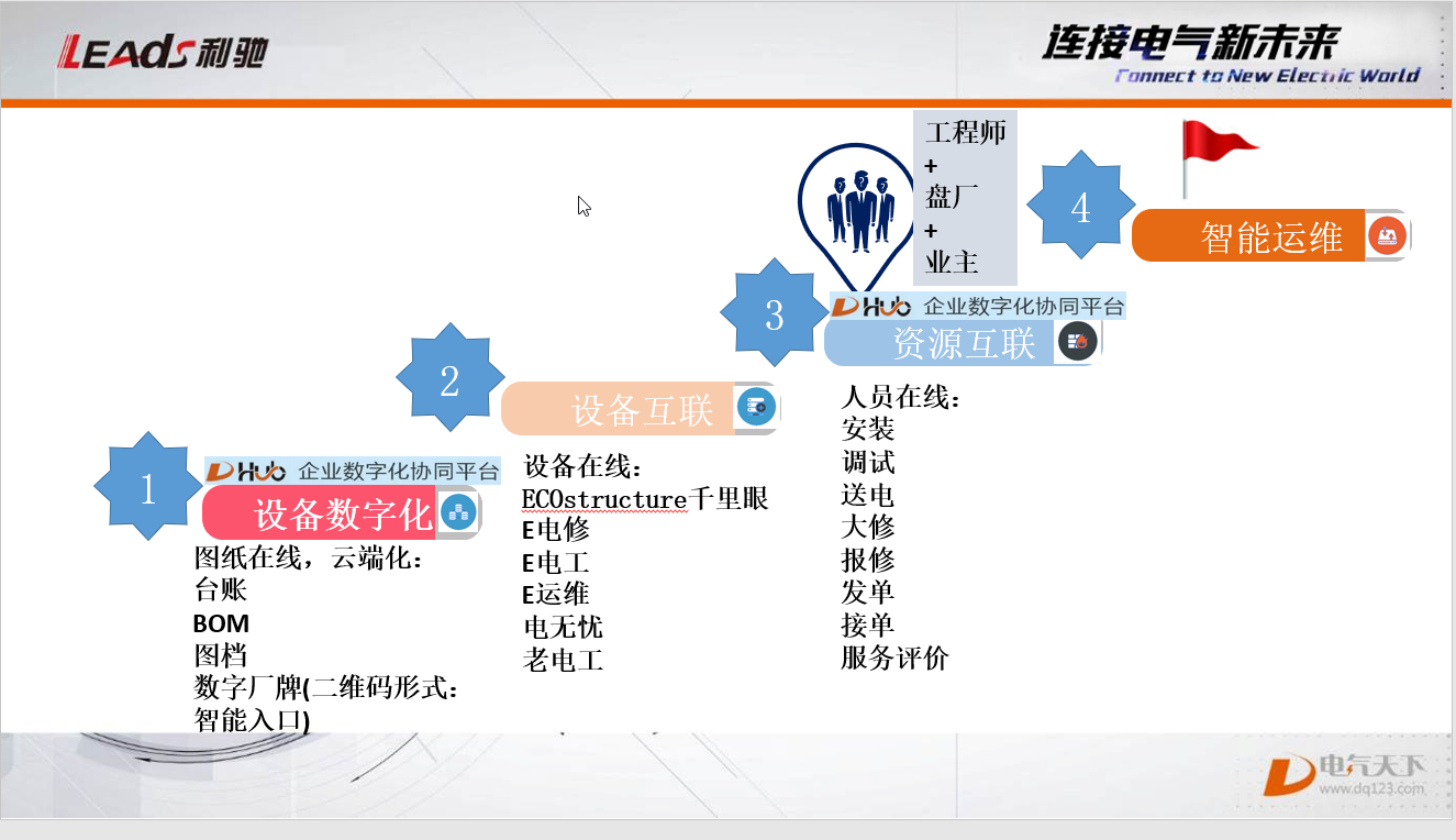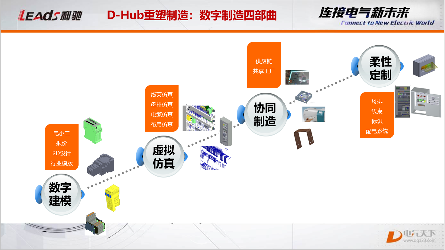 采訪中,令永卓感慨道:“我已經(jīng)服務(wù)于電氣行業(yè)25年,很榮幸作為參與者一路見(jiàn)證電氣行業(yè)由傳統(tǒng)走向今天的智能化,這些離不開(kāi)智能制造近年來(lái)的大力推動(dòng)。當(dāng)前企業(yè)紛紛將其納入發(fā)展的戰(zhàn)略目標(biāo),利馳也不例外,不斷創(chuàng)新研發(fā),先后推出了工業(yè)電氣一站式工作平臺(tái)——電氣天下和D-Hub企業(yè)數(shù)字化協(xié)同平臺(tái),幫助電力裝備制造行業(yè)智造升級(jí)。” 據(jù)了解,電氣天下針對(duì)個(gè)人用戶開(kāi)放服務(wù),提供海量免費(fèi)工業(yè)設(shè)計(jì)軟件、選型數(shù)據(jù)及服務(wù)、專業(yè)文獻(xiàn)等資源,幫助電氣行業(yè)上下游實(shí)現(xiàn)電氣的選型、圖紙、樣本資料、軟件下載,涵蓋電氣指數(shù)、電氣智庫(kù)知識(shí)分享一體化與一站式的服務(wù)。而把眾多工業(yè)軟件集成到一個(gè)云端數(shù)據(jù)庫(kù),一個(gè)統(tǒng)一的數(shù)字化協(xié)同平臺(tái)——D-Hub,則成功地打通了選型、報(bào)價(jià)、設(shè)計(jì)、工藝、制造、供應(yīng)鏈的數(shù)據(jù),使得企業(yè)的數(shù)據(jù)資產(chǎn)可以跨部門(mén)、跨企業(yè)的共享和復(fù)用,并讓數(shù)據(jù)在流動(dòng)中不斷增值。目前D-hub已覆蓋多種模板,建立了以3D元件為核心的覆蓋配電、自動(dòng)化行業(yè)1000多個(gè)品牌、3萬(wàn)多個(gè)系列、2.5億多個(gè)電氣及自動(dòng)化元件數(shù)據(jù)庫(kù)。令永卓直言:“D-Hub的功能遠(yuǎn)不止此,利馳已經(jīng)在D-Hub上開(kāi)始發(fā)力,發(fā)展數(shù)據(jù)可視化技術(shù),進(jìn)而實(shí)現(xiàn)設(shè)備互聯(lián)、產(chǎn)線互聯(lián),以及智能調(diào)度,助力電力裝備業(yè)的設(shè)計(jì)、制造的全流程數(shù)字化。并且,未來(lái)D-Hub將帶來(lái)更多可能性,實(shí)現(xiàn)設(shè)備數(shù)字化,進(jìn)而將設(shè)備資產(chǎn)與維修工程師和設(shè)備生產(chǎn)商連接起來(lái),實(shí)現(xiàn)資源互聯(lián)和設(shè)備在線,最終實(shí)現(xiàn)智能運(yùn)維,更好地服務(wù)電力電氣行業(yè)。”