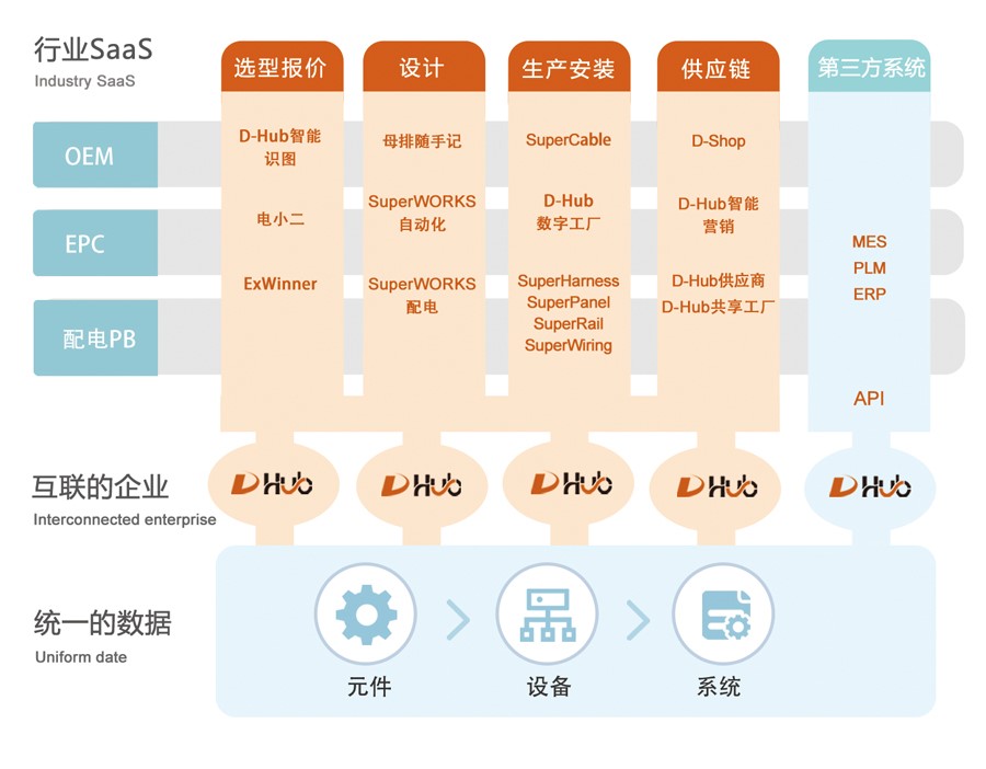 令永卓深諳數(shù)據(jù)的價(jià)值。他帶著創(chuàng)業(yè)家的韌勁,敏銳洞察電力裝備制造行業(yè)的發(fā)展趨勢(shì),本著從數(shù)據(jù)中學(xué)習(xí)、改變電力電氣行業(yè)的初衷,從數(shù)據(jù)中提取價(jià)值服務(wù)用戶的理念,提出用數(shù)據(jù)賦能行業(yè),致力于打通數(shù)據(jù)流。談起如今專注挖掘數(shù)據(jù)的價(jià)值,令永卓表示,這一切源于他求學(xué)時(shí)代的經(jīng)歷。大學(xué)期間,在清華工程力學(xué)系求學(xué)的令永卓建立了面向問(wèn)題建立數(shù)學(xué)模型,把復(fù)雜的非線性問(wèn)題抽象為簡(jiǎn)單的線性問(wèn)題進(jìn)行求解的思維方式。在后來(lái)的工作中,他發(fā)現(xiàn)設(shè)備的設(shè)計(jì)、生產(chǎn)制造以及運(yùn)維之間并非真正有效連接,存在嚴(yán)重的數(shù)據(jù)偏差甚至脫節(jié)的現(xiàn)象,為達(dá)到設(shè)計(jì)、制造以及供應(yīng)鏈的協(xié)同,他提出在電力裝備制造行業(yè)形成貫穿橫向、縱向、端到端的數(shù)據(jù)流通的舉措。之后,他將創(chuàng)想落地,從電氣軟件的數(shù)據(jù)建模開(kāi)始,制定標(biāo)準(zhǔn),進(jìn)行3D仿真,通過(guò)機(jī)器智能設(shè)計(jì)、智能識(shí)圖、智能報(bào)價(jià),進(jìn)而幫助產(chǎn)品實(shí)現(xiàn)協(xié)同制造。令永卓透露:“當(dāng)前基于D-Hub制造的縱向數(shù)據(jù)流與D-Hub供應(yīng)鏈的橫向數(shù)據(jù)流已經(jīng)被成功打通,下一步我們將重點(diǎn)打通集產(chǎn)品研發(fā)、系統(tǒng)設(shè)計(jì)、安裝施工、運(yùn)營(yíng)維護(hù)的D-Hub運(yùn)維的端到端數(shù)據(jù)流。”