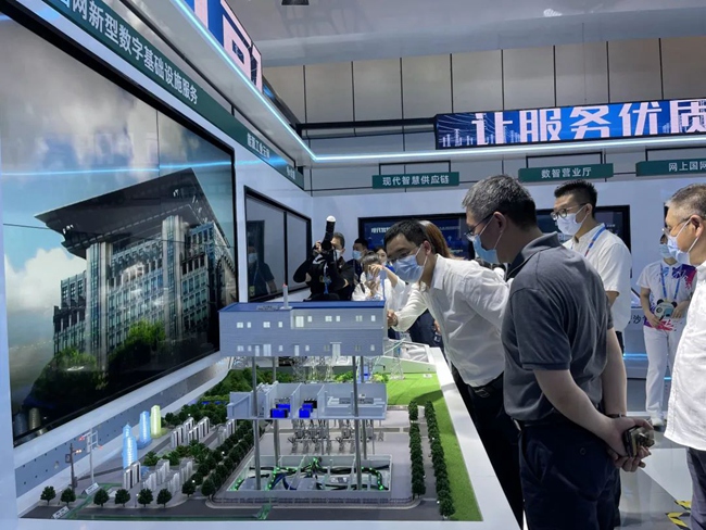 國網(wǎng)信通產業(yè)集團工作人員介紹國網(wǎng)新型數(shù)字基礎設施服務。