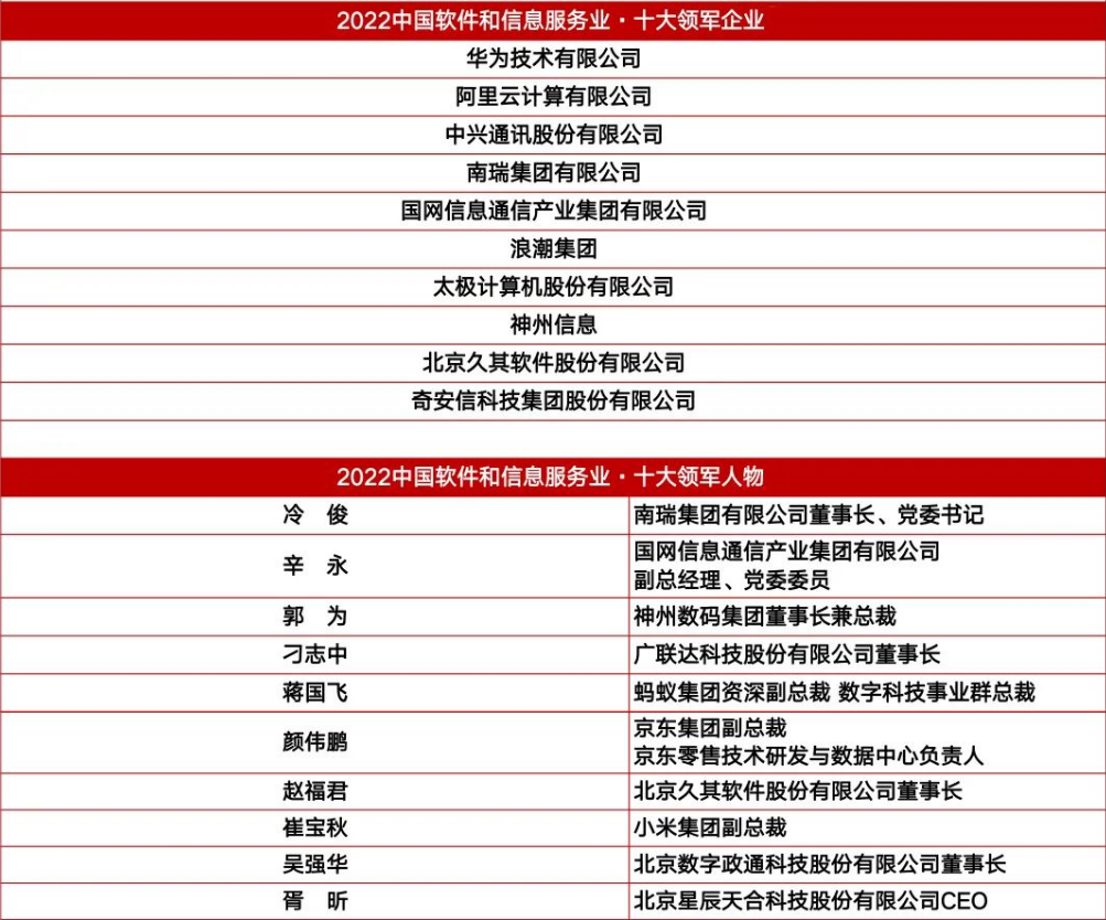 國(guó)網(wǎng)信息通信產(chǎn)業(yè)集團(tuán)有限公司榮膺2022中國(guó)軟件和信息服務(wù)業(yè)十大領(lǐng)軍企業(yè)稱號(hào),國(guó)網(wǎng)信息通信產(chǎn)業(yè)集團(tuán)有限公司副總經(jīng)理辛永獲評(píng)2022中國(guó)軟件和信息服務(wù)業(yè)十大領(lǐng)軍人物,國(guó)網(wǎng)信息通信股份有限公司獲評(píng)2022中國(guó)軟件和信息服務(wù)業(yè)風(fēng)云企業(yè)稱號(hào)。