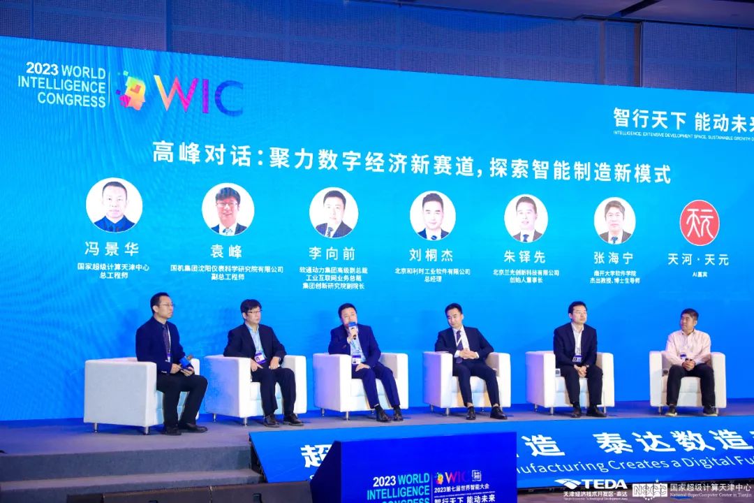 高峰對(duì)話環(huán)節(jié)由國(guó)家超級(jí)計(jì)算天津中心總工程師馮景華主持,圍繞“聚力數(shù)字經(jīng)濟(jì)新賽道,探索智能制造新模式”主題展開探討。國(guó)機(jī)集團(tuán)沈陽儀表科學(xué)研究院有限公司副總工程師袁峰;軟通動(dòng)力集團(tuán)高級(jí)副總裁,工業(yè)互聯(lián)網(wǎng)業(yè)務(wù)總裁,集團(tuán)創(chuàng)新研究院副院長(zhǎng)、李向前;北京和利時(shí)工業(yè)軟件有限公司總經(jīng)理、劉桐杰;北京蘭光創(chuàng)新科技有限公司創(chuàng)始人、董事長(zhǎng),朱鐸先;南開大學(xué)軟件學(xué)院、杰出教授、博士生導(dǎo)師、張海寧;以及神秘的 AI 嘉賓-天河·天元,現(xiàn)場(chǎng)共話智能制造新模式,推動(dòng)數(shù)字經(jīng)濟(jì)發(fā)展。