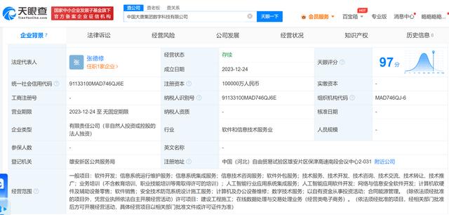 近日,中國大唐集團數(shù)字科技有限公司成立,法定代表人為張德修,注冊資本10億人民幣,經(jīng)營范圍含人工智能行業(yè)應用系統(tǒng)集成服務、人工智能應用軟件開發(fā)、網(wǎng)絡與信息安全軟件開發(fā)、數(shù)字技術服務、以自有資金從事投資活動等。