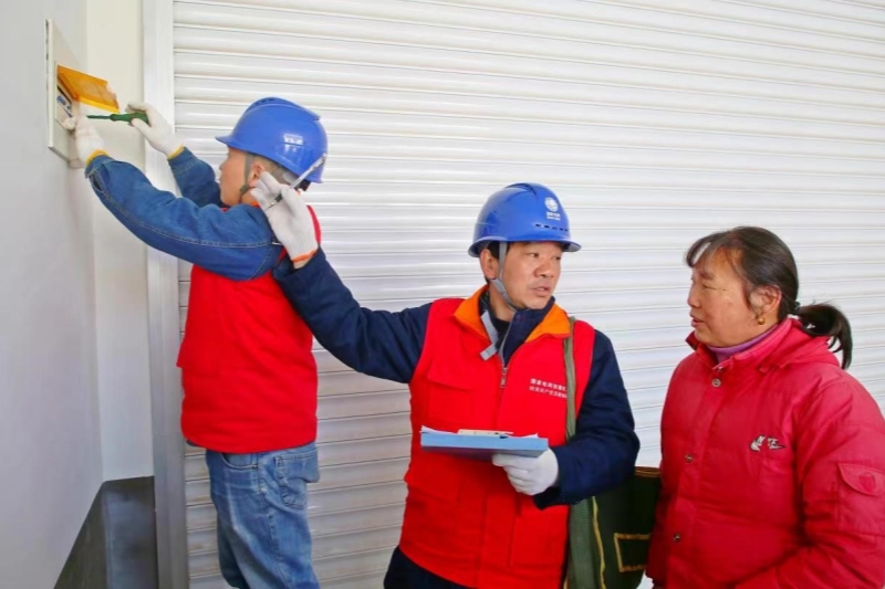 國(guó)網(wǎng)安徽合肥供電公司工作人員為居民王登月檢查家中用電線路。