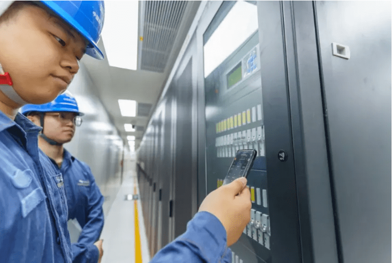 深圳供電局基于開源鴻蒙自主研制通信機(jī)房數(shù)智運(yùn)維系統(tǒng),提高了機(jī)房智能管理水平。圖為供電人員使用鴻蒙手機(jī)“碰一碰”機(jī)房設(shè)備,就能掌握該設(shè)備實(shí)時數(shù)據(jù)。(黃海鵬攝)