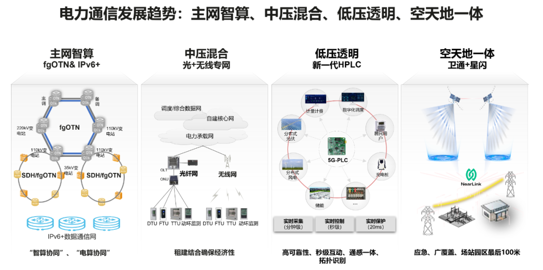 新型電力系統(tǒng)下,通信目標(biāo)網(wǎng)呈現(xiàn)四大特征:主網(wǎng)智算、中壓混合、低壓透明、空天地一體。主網(wǎng)智算需要考慮的是包括以東數(shù)西算為代表的光跑電不跑,以邊緣計算為代表的電跑光不跑,以及結(jié)合時空特性,來助力解決新能源消納和削峰填谷;近期臺風(fēng)應(yīng)急帶給我們的啟發(fā)是,10kV通信網(wǎng)是電網(wǎng)通信目前最薄弱的環(huán)節(jié),是典型的“盲區(qū)”。這需要體系性規(guī)劃以光纖+無線專網(wǎng)的通信目標(biāo)網(wǎng),也要輔之以空天地一體的應(yīng)急和廣覆蓋能力;隨著海量的分布式光伏接入、充電樁接入、分布式儲能接入、用戶互動及潛在的負(fù)荷側(cè)交易,這需要體系性思考支撐400V低壓透明的通信需求。
