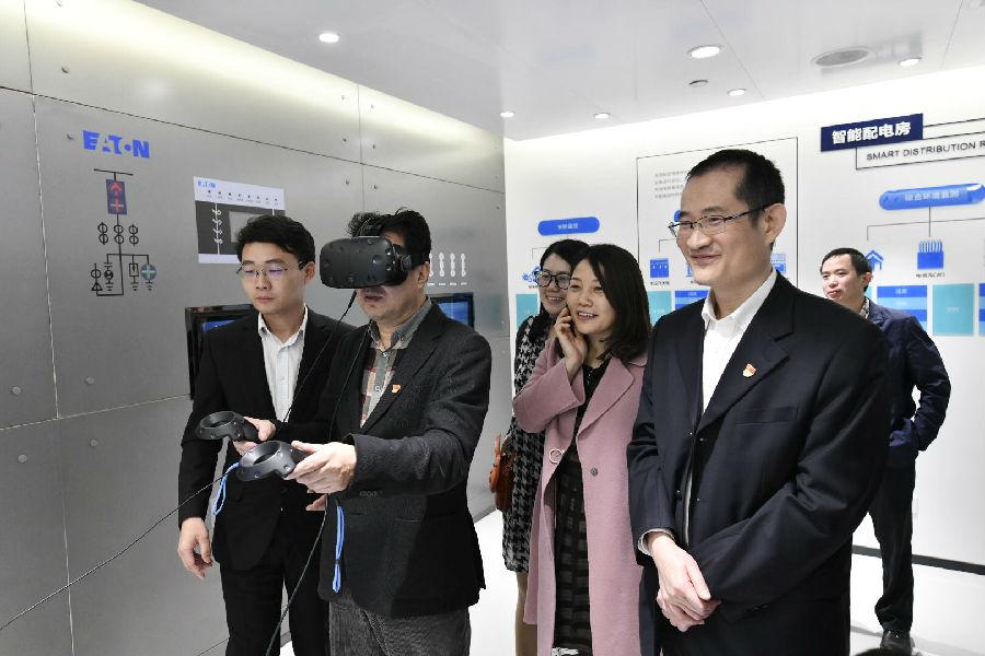佩戴VR眼鏡即可揭開智能配電房神秘的面紗,享受沉浸式的觀影體驗(yàn);在書房通過手指觸動(dòng)“跳一跳”游戲即可身臨其境體驗(yàn)一度電的使用過程......這些以往只能在腦海里幻想的場(chǎng)景,如今變得可觀可感。