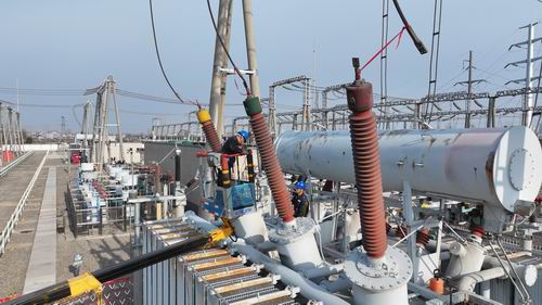 圖為3月26日,該公司人員對(duì)220千伏健康變開展主變及開關(guān)例行試驗(yàn)、設(shè)備維護(hù)等操作。