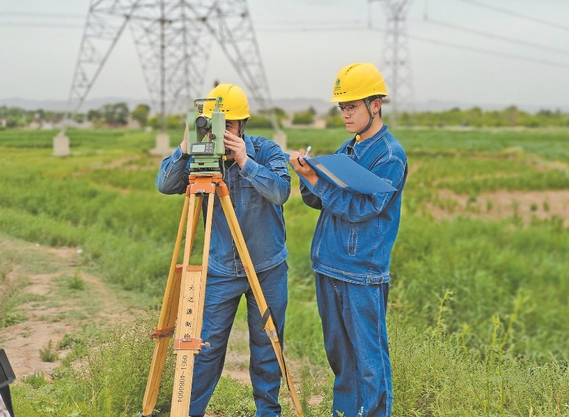 巡檢人員用經(jīng)緯儀開展輸電線路測量工作。李超 攝