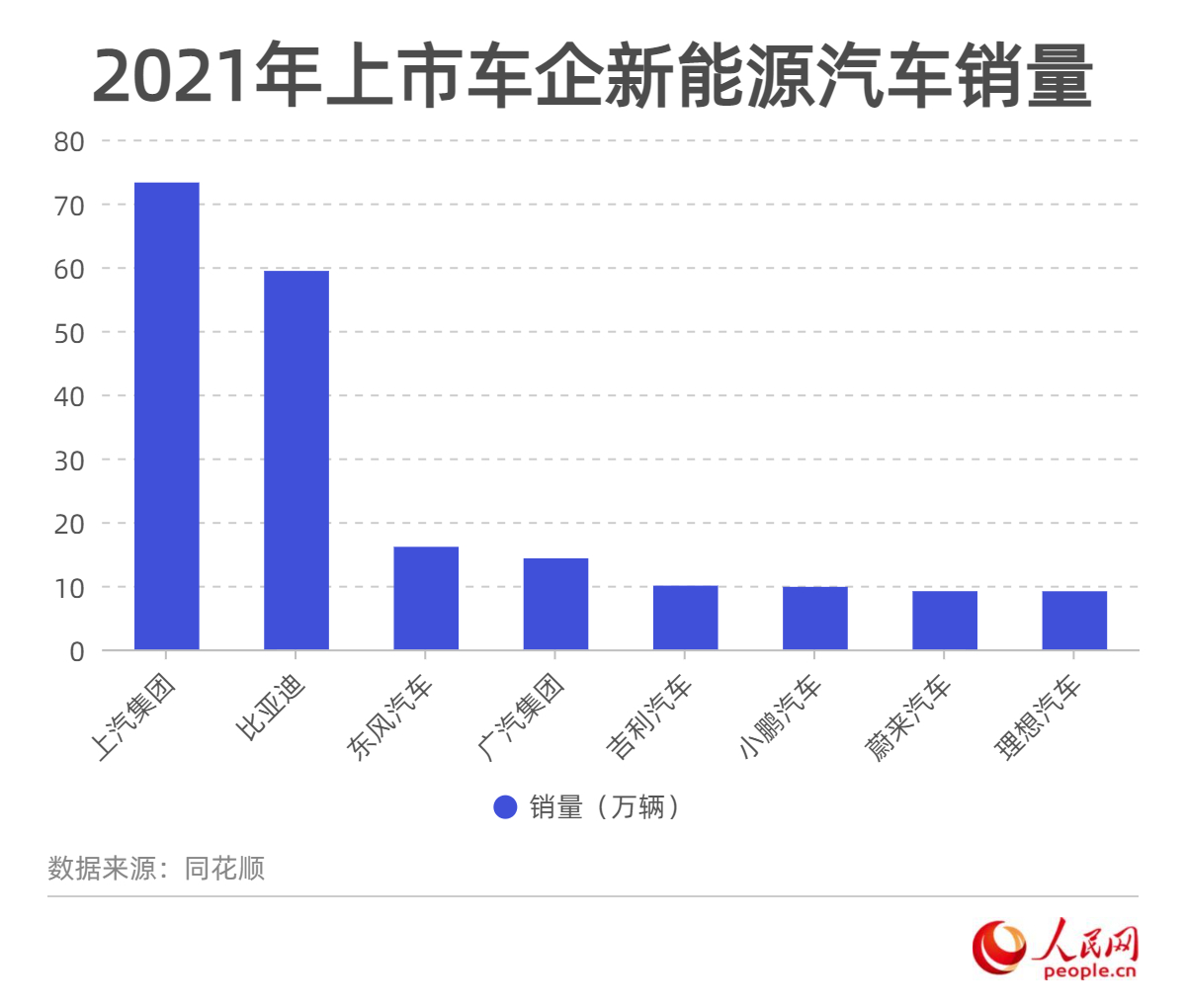 數(shù)據(jù)顯示,2021年全國新能源汽車銷量前15名中,自主品牌占據(jù)12席。行業(yè)專家認為,上市車企交出的亮眼年度“答卷”不僅體現(xiàn)了新能源汽車產(chǎn)業(yè)“量”的突破,也代表“質(zhì)”的飛躍。