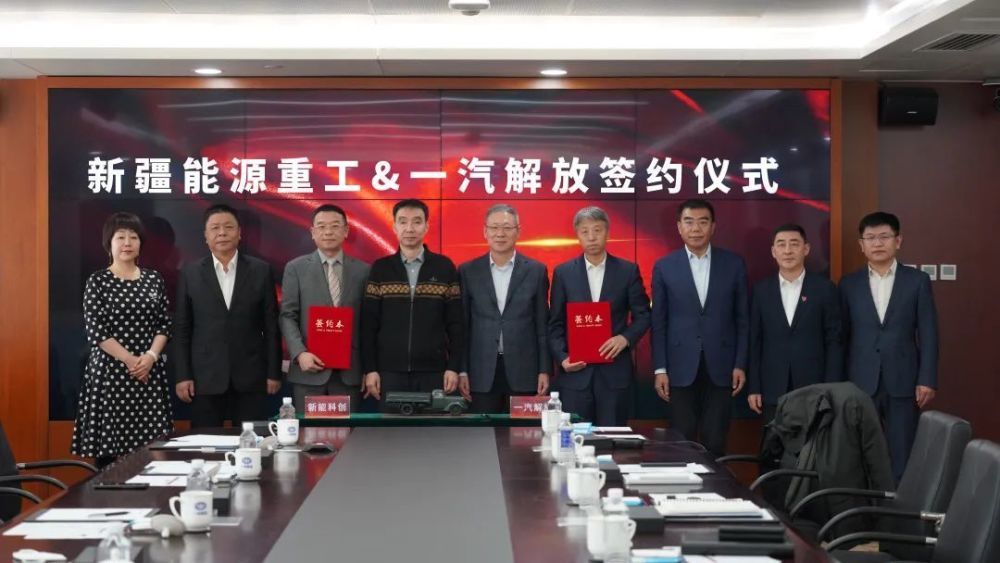 1月14日,一汽解放汽車有限公司(簡稱“一汽解放”)與新疆能源重工科創(chuàng)有限責(zé)任公司(簡稱“新疆能源重工”)在長春簽署1000輛采購框架協(xié)議,全面深化戰(zhàn)略合作伙伴關(guān)系。新疆能源集團(tuán)銷售 (產(chǎn)業(yè)鏈) 公司黨委書記、董事長王凱,新疆能源重工科創(chuàng)有限責(zé)任公司副董事長瞿猛、總經(jīng)理姜李明,中國一汽總經(jīng)理助理、一汽解放董事長、黨委書記胡漢杰,一汽解放常務(wù)副總經(jīng)理于長信出席簽約儀式。