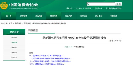 受訪者認(rèn)為公共充電樁的各項(xiàng)滿意度 中國消費(fèi)者協(xié)會網(wǎng)站截圖